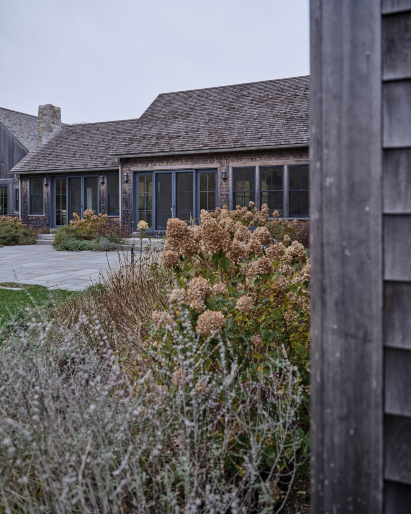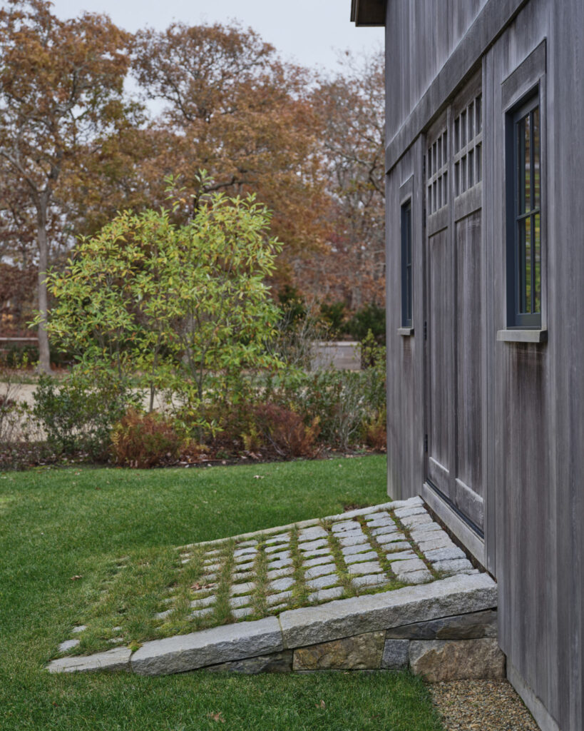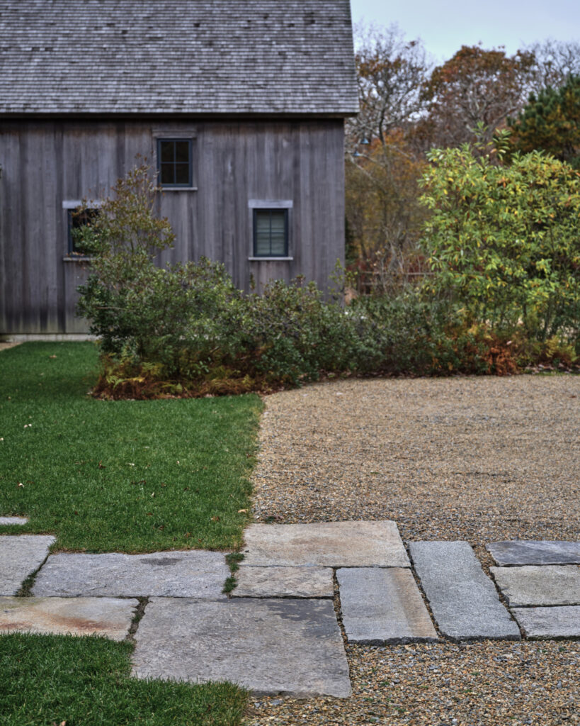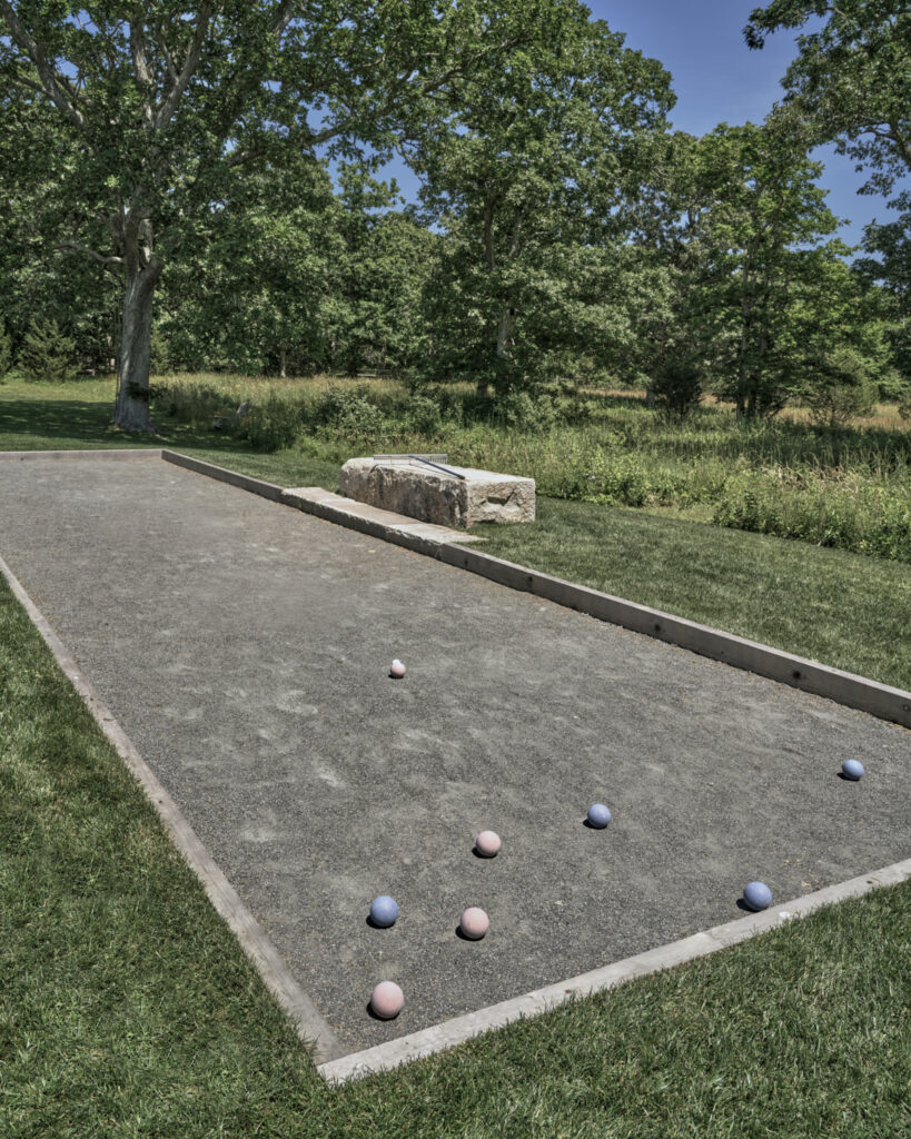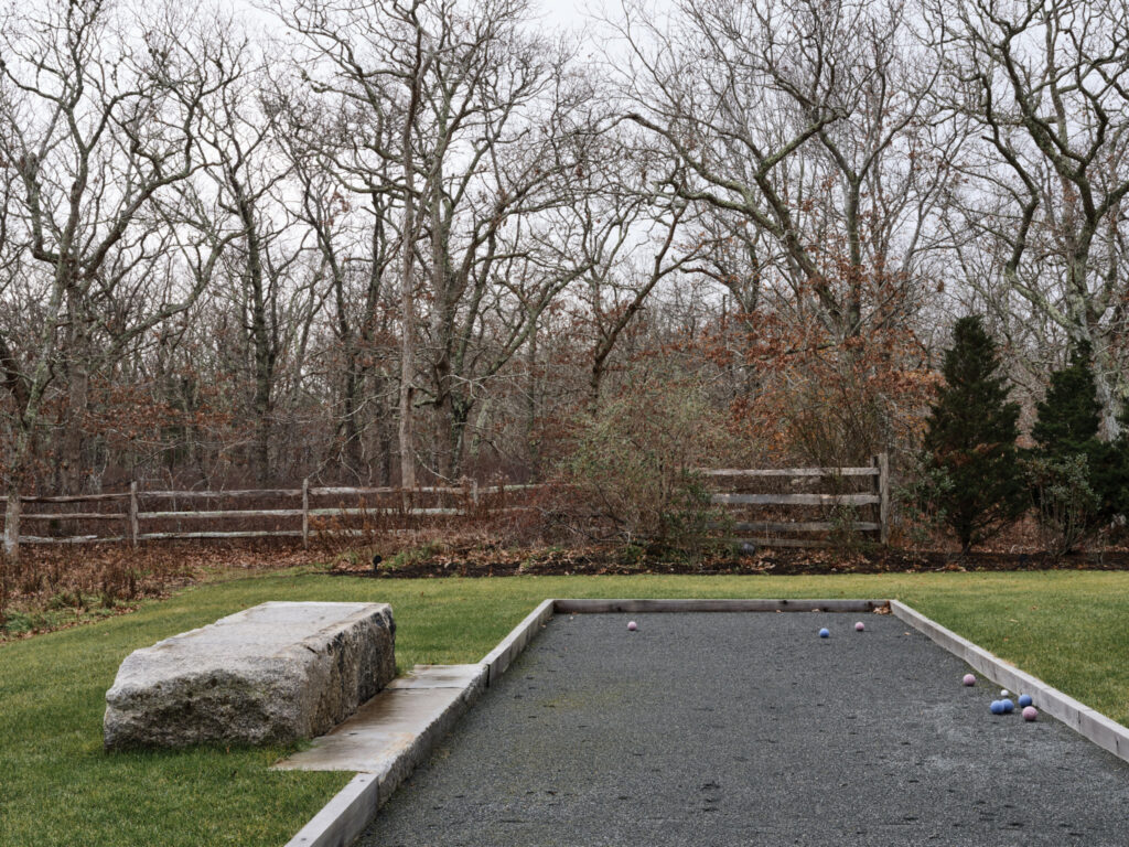 An old horse pasture surrounded by wind-sculpted oaks provided the perfect opportunity for an outdoor-oriented family to build an ultimate summertime retreat on Martha’s Vineyard. Little did they know, November in this landscape would be one of the best seasons of all. A restrained palette composed predominantly of native, salt and drought-tolerant plants creates contrasting textures and colors that soften the architecture and provide multi-seasonal interest all-year-round. Worn slabs of reclaimed granite are thoughtfully positioned to form walkways and terraces that lead to a pool garden, fire pit, wood crib, and bocce court that overlooks a dramatic meadow. A bluestone dining terrace and grill wall create an easy space to entertain family and friends after a long day at the beach.