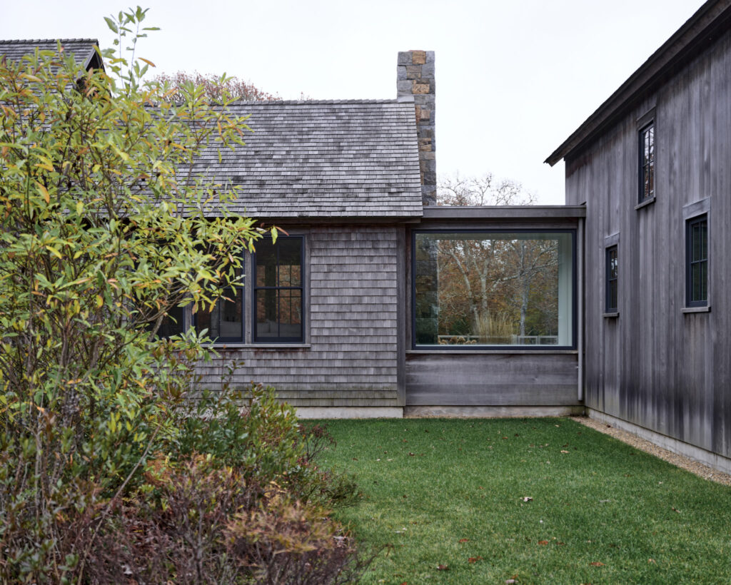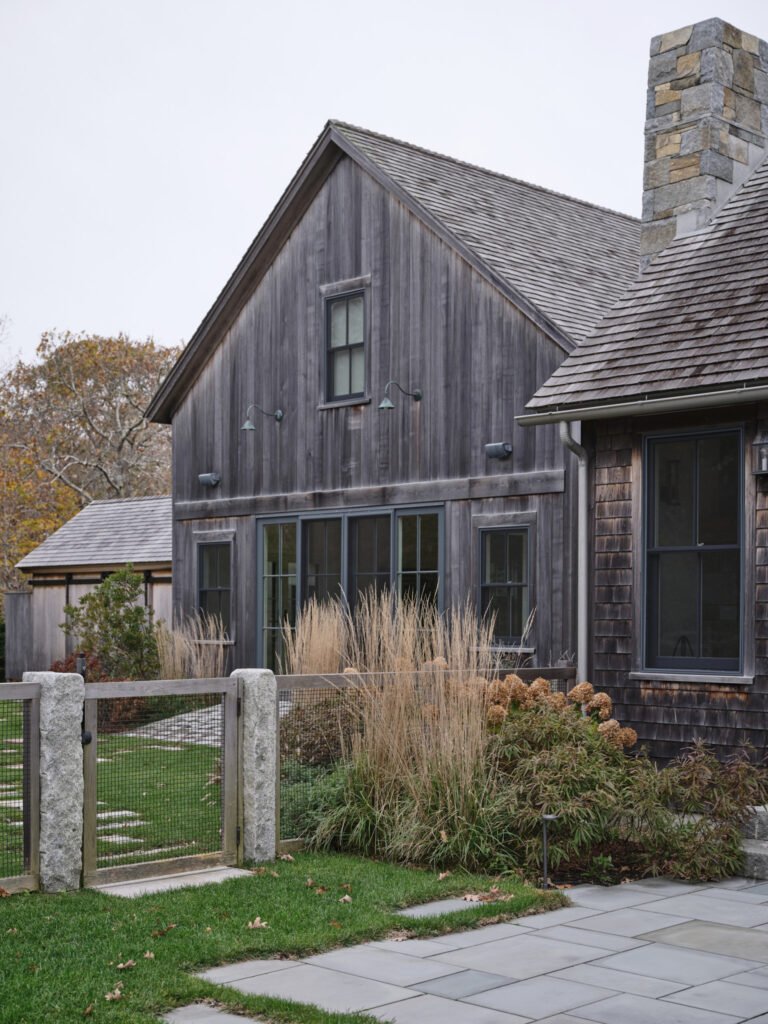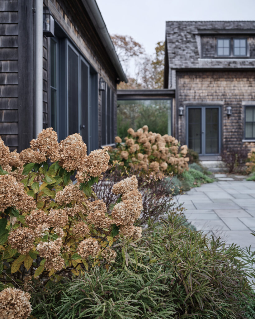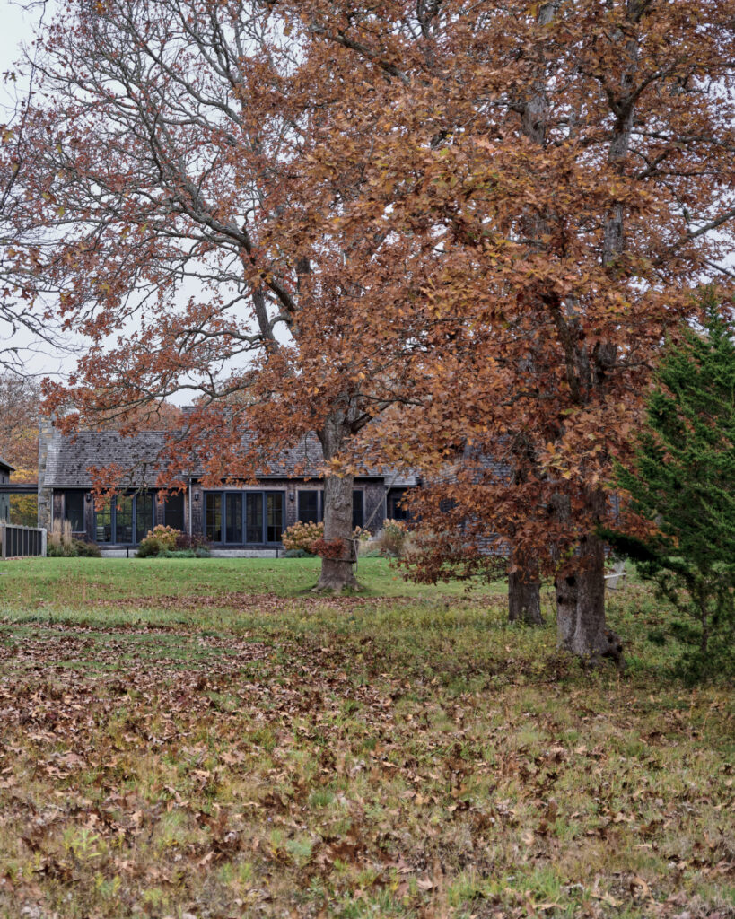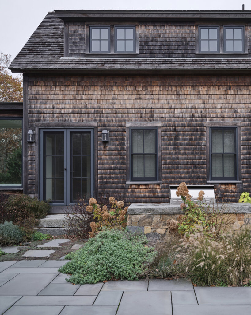 An old horse pasture surrounded by wind-sculpted oaks provided the perfect opportunity for an outdoor-oriented family to build an ultimate summertime retreat on Martha’s Vineyard. Little did they know, November in this landscape would be one of the best seasons of all. A restrained palette composed predominantly of native, salt and drought-tolerant plants creates contrasting textures and colors that soften the architecture and provide multi-seasonal interest all-year-round. Worn slabs of reclaimed granite are thoughtfully positioned to form walkways and terraces that lead to a pool garden, fire pit, wood crib, and bocce court that overlooks a dramatic meadow. A bluestone dining terrace and grill wall create an easy space to entertain family and friends after a long day at the beach.