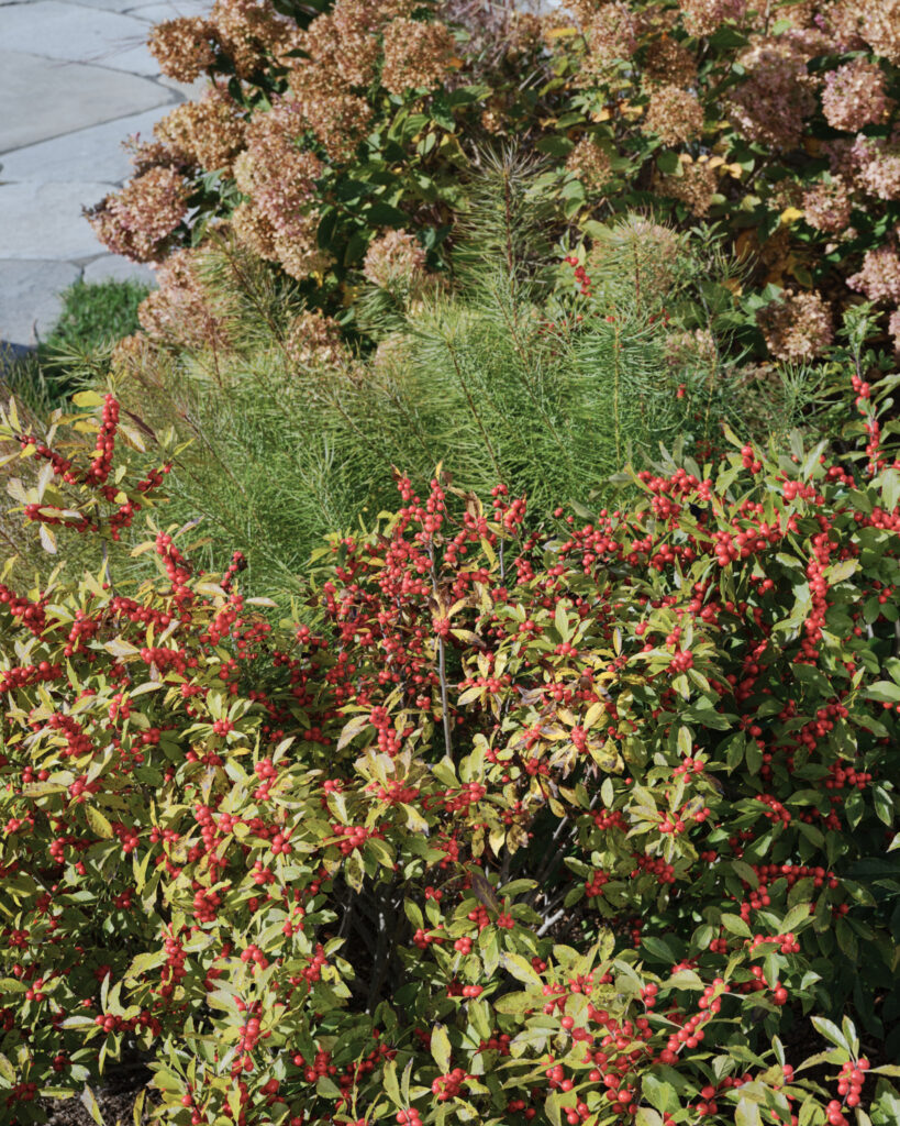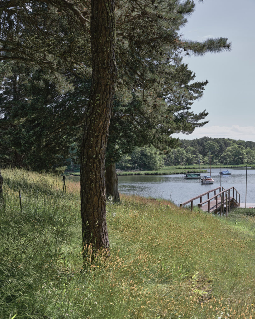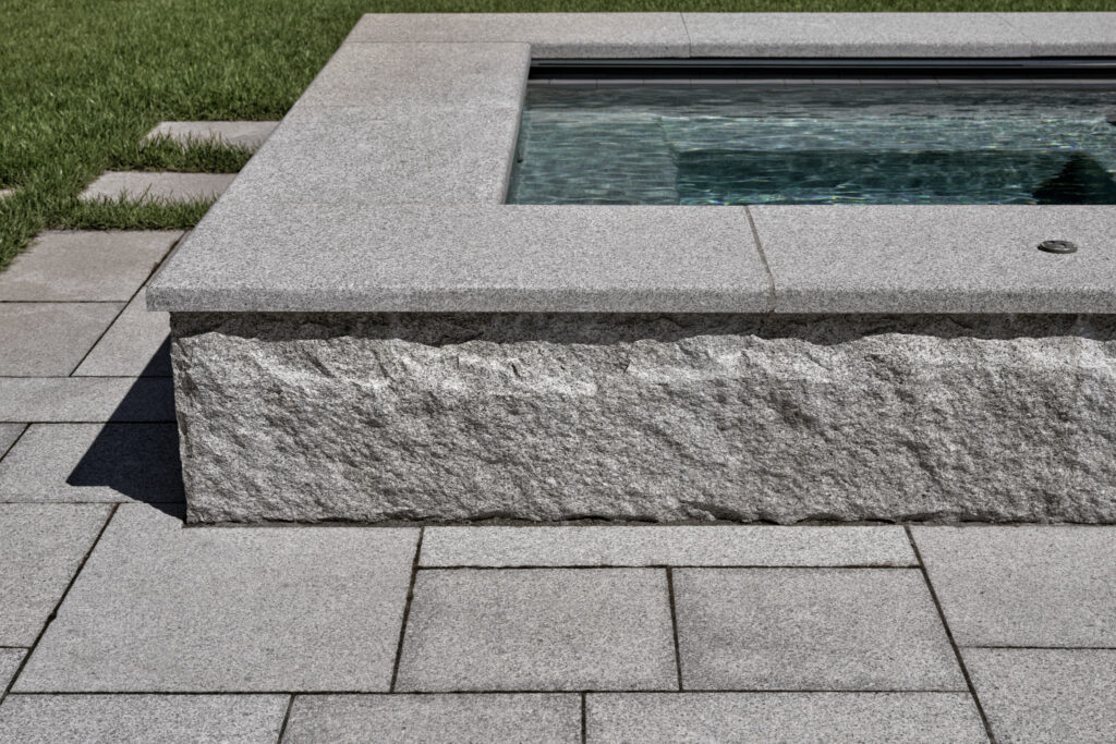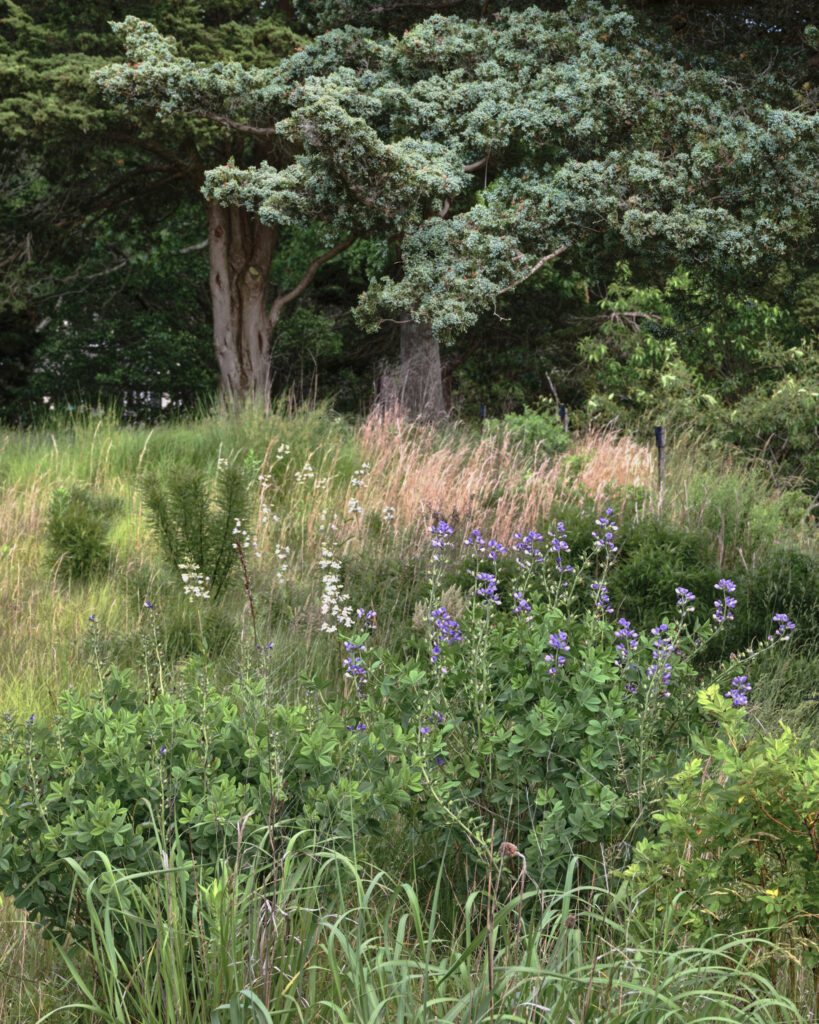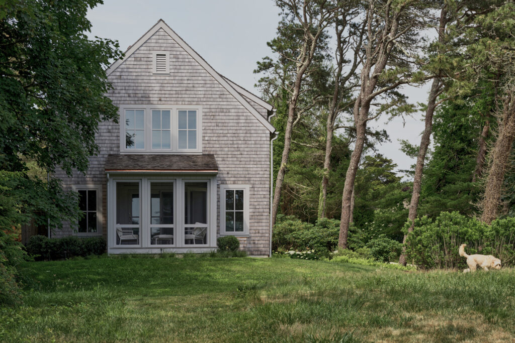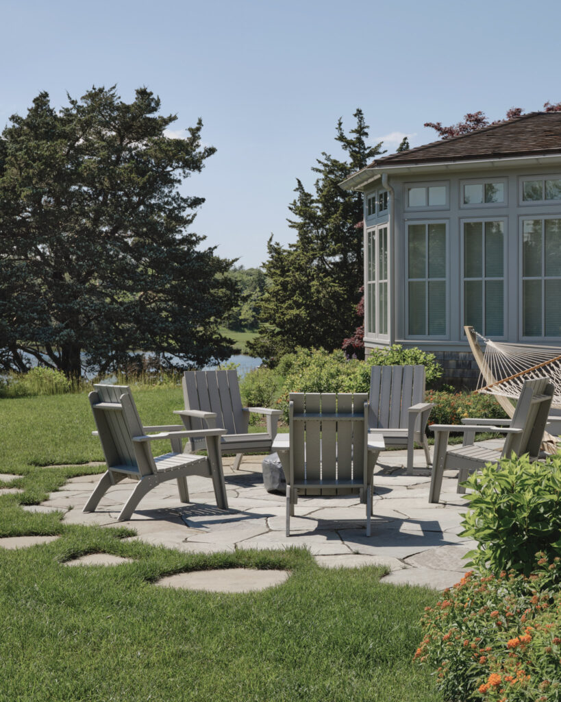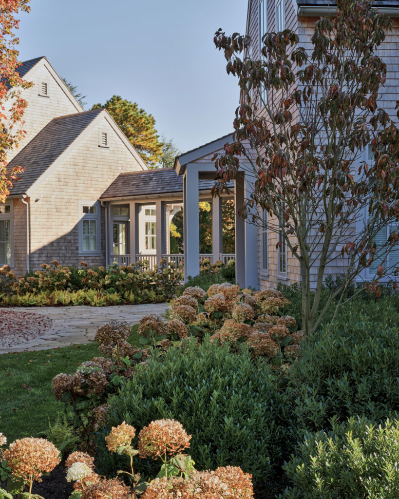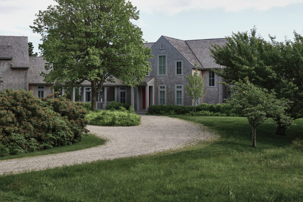 From the moment the new owners of this sprawling waterfront property on Frostfish Cove stepped foot here, they knew this was the place they had long been looking for. A winding gravel drive leads past a charming guest cottage, beneath the canopies of mature pines, and along the edges of managed meadow, ultimately leading to a modern shingle-style home at the top of a restored coastal bluff. The site, once occupied by a dilapidated vacation home, is punctuated with sculptural cedars and maples all the way down to the water’s edge. The trees attract migratory birds and provide wonderful scale to the structures. Paths built from irregularly shaped bluestone and fieldstone steppers lead to terraces that radiate from the prime living areas of the home. An elevated stone hot tub overflows into the pool, and a board-formed concrete retaining wall serves as pool enclosure, ensuring that views of the water remain unobstructed. Gracious swaths of native plants spill across the property, softening edges, nourishing wildlife, and stabilizing soils.