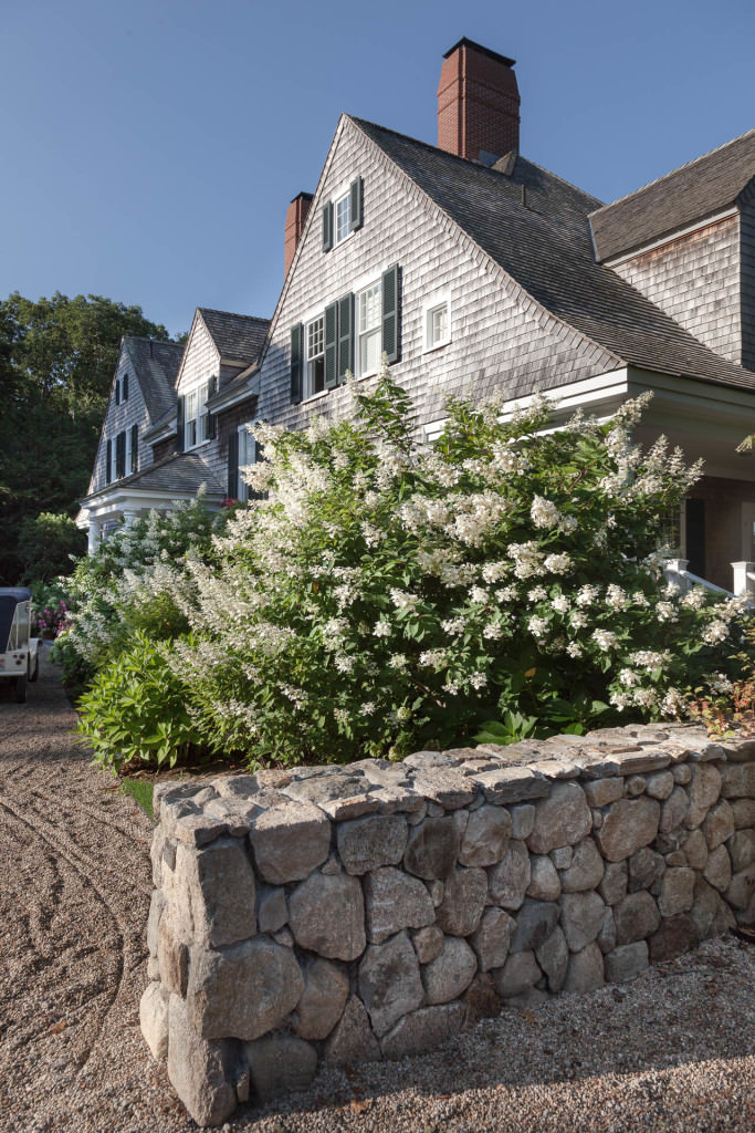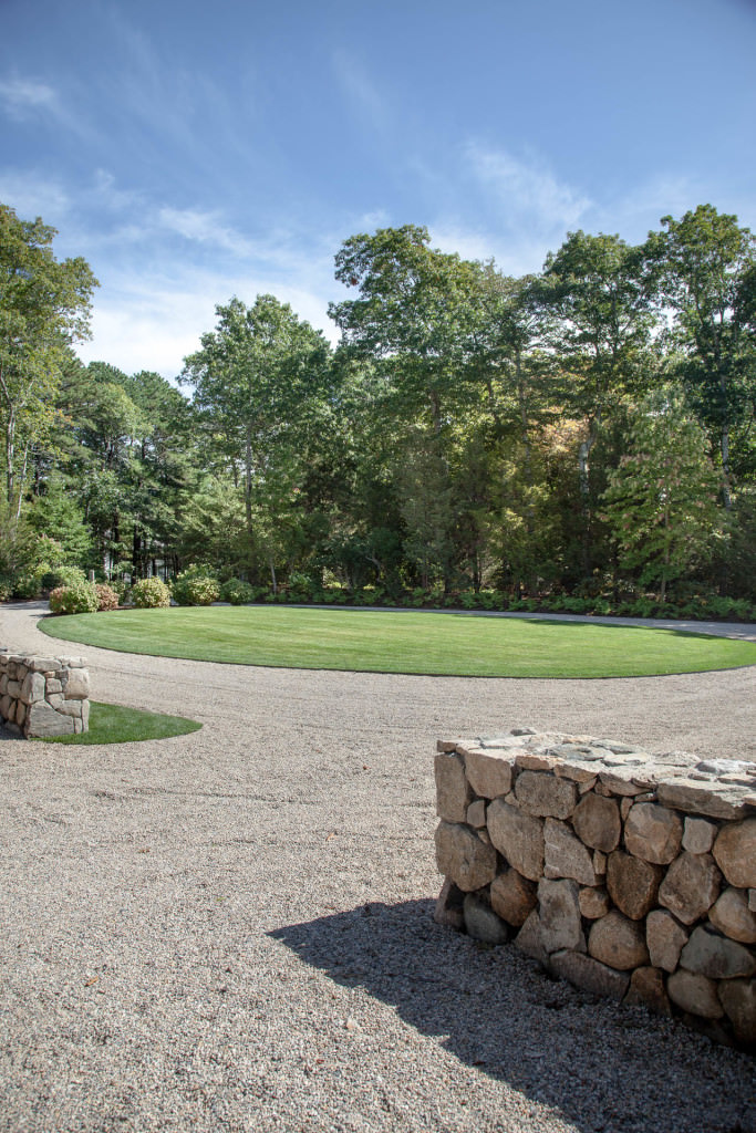 Complex alterations to surrounding properties inspire a complete front-yard redesign at this Cape Cod classic compound, designed by prominent architect, Patrick Ahearn. An inviting new gravel driveway and three small parking courts cleverly weave through existing oaks and newly planted cedars underplanted with swaths of bayberry, itea, hydrangea,and fern. Stone walls are preserved and expanded to better define new zones of circulation, and the changes give the property an expansive feel while maintaining its established character in the heart of one of the Cape’s most exclusive summer communities.