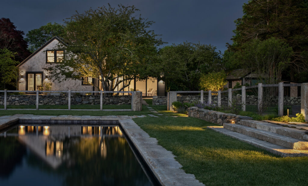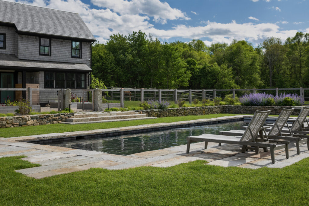 Situated within the windswept pastures and crisscrossing stone walls of Little Compton, Rhode Island, an eighteenth-century farmstead begins a new chapter of its history when purchased by a new family. A deep respect for this iconic corner of the American landscape guided the design process, resulting in a strategy of light touches in deference to locally-sourced materials, native plants, and vernacular landscape forms. The team protected, reconstructed, and enhanced existing elements of the site, while a pool, outdoor entertaining spaces, and updated circulation reflect twenty-first century patterns of life. The result is pure Little Compton: a timeless property reinvigorated, sure to be passed down through the generations.