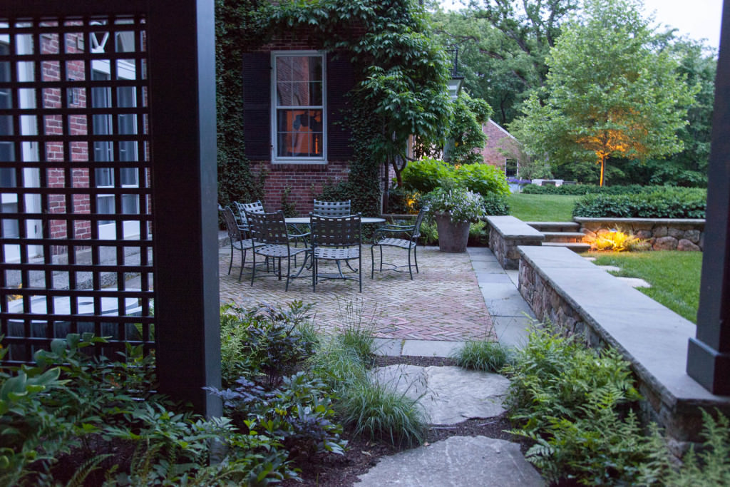The homeowners requested an environmentally conscientious masterplan that could be installed in phases. Despite the building’s private setting, the clients sought clear divisions between public and private zones of the property. They desired a landscape that could simultaneously respect traditional aspects of the house by blending sophisticated, yet relaxed outdoor experiences to allow the busy family of five time to absorb their incredible surroundings, just minutes from downtown urban Boston.The verdant new landscape is designed to support a variety of uses that preserve and enhance the property’s ecological systems. Rather than fight the complex existing conditions, the designers embraced them fully by integrating landscape spaces and experiences within the context of the site.