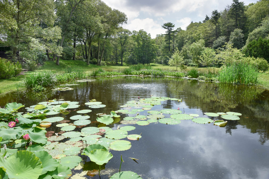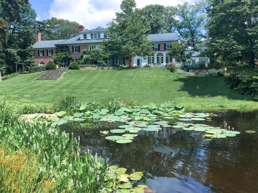 A remarkable, turn-of-the-century center-hall brick colonial standing prominently in the center of a sacred Olmsted-designed watershed underwent substantial renovations that obliterated the surrounding mature landscape. The spectacular multi-acre site boasts mature oaks and maples, wonderful stone outcroppings, and dramatic changes in topography. Established hydrological patterns presented wonderful opportunities to reimagine a derelict trout pond that had experienced a complete vegetative collapse in the face of an aggressive muskrat colony. The edges of the pond were completely scoured to bare clay, and the water quality was almost irreversibly compromised. Remnant outdoor spaces were poorly defined, and the property lacked an overriding vision that could parallel the historic home’s grand presence.