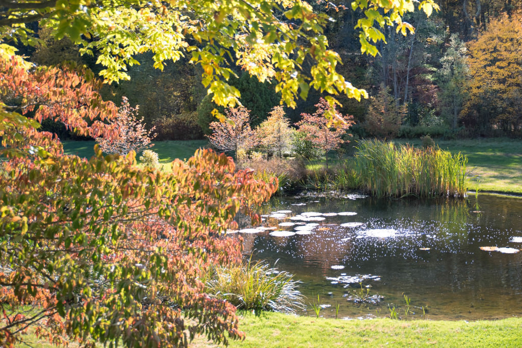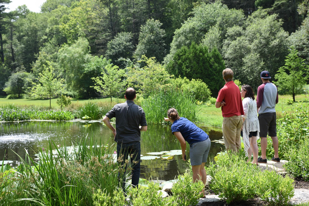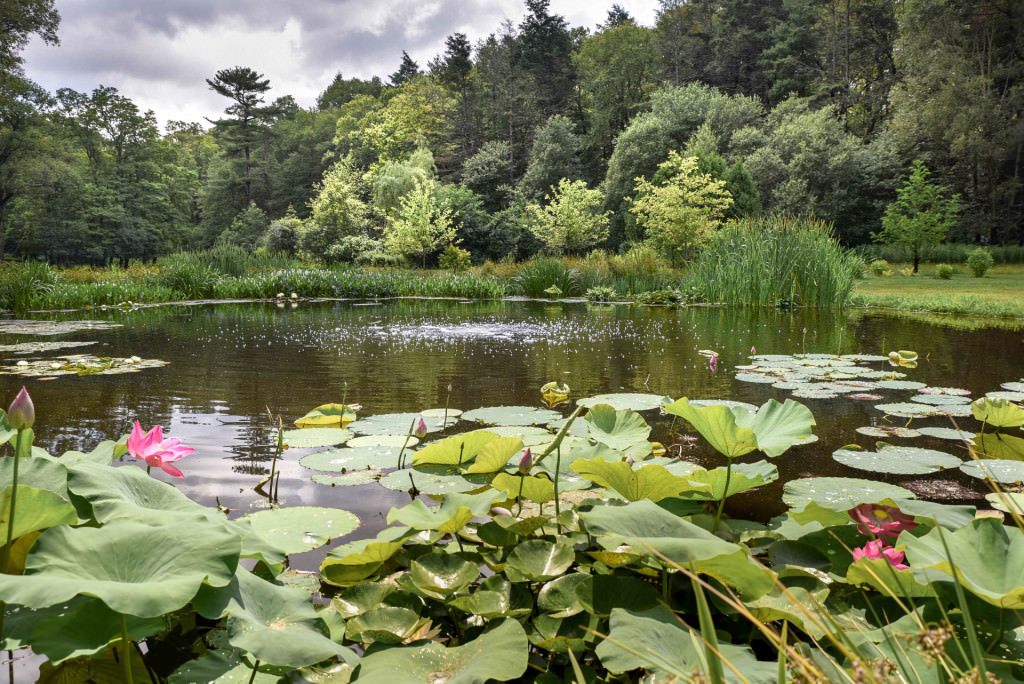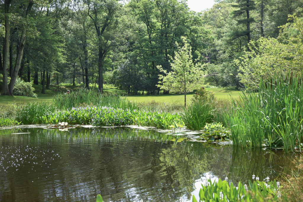 The once compromised pond was strategically dredged and revived with large, expansive swaths of native wetland plants; a dazzling year-round amenity has quickly taken hold. Lotus, waterlilies, and other essential aquatic plants create oxygen-rich water where frogs, turtles, ducks, and geese congregate throughout the summer. Mown lawn areas are converted to seasonally managed meadow, and large black tupelo, viburnum, clethra, and ilex create excellent multi-seasonal foliage displays.The new landscape consciously engages with several different types of established ecological systems, and the project has inspired the family to actively and passively enjoy their surroundings. All plantings are pollinator-friendly, and reviving the pond’s health has created excellent habitat conditions that spill beyond site boundaries; balanced wildlife patterns are now visible. For these clients, this project has inspired an enduring sense of stewardship that contributes substantially to the health and vitality of the surrounding watershed.