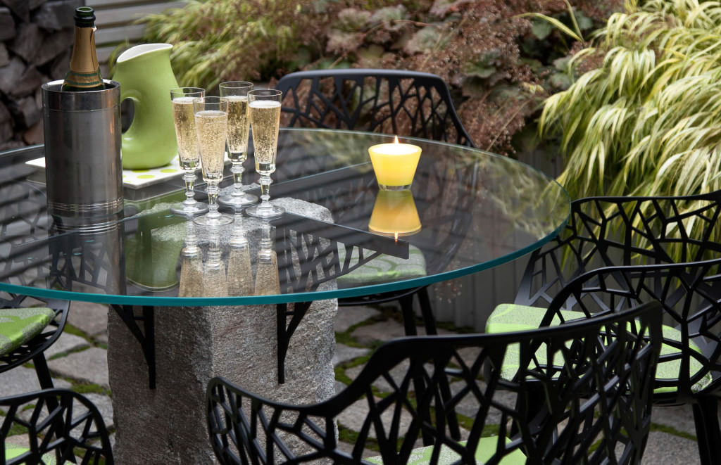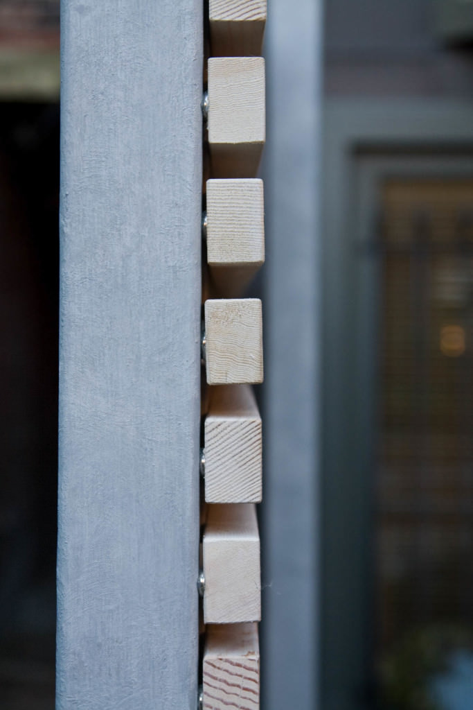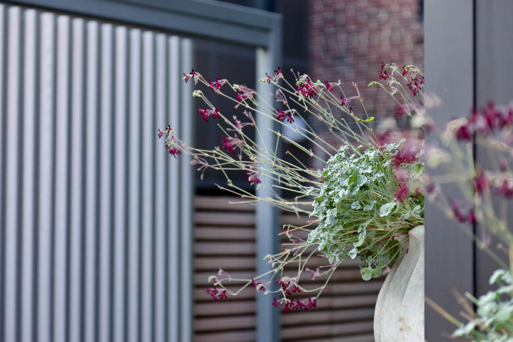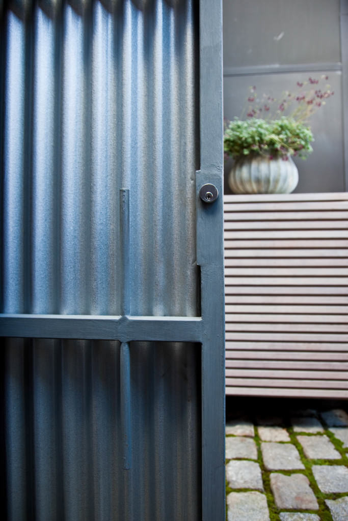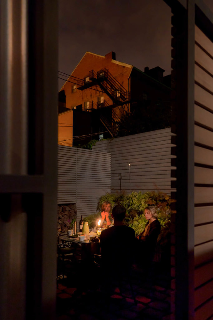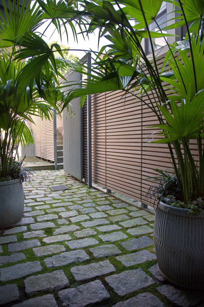 Historic Boston rises above a contemporary private courtyard in the city’s South End. Steel-framed, whitewashed fir walls enclose a vibrant, durable garden. Innovative storage solutions make efficient use of limited space. Soothing geometric patterns visually extend the volume of the courtyard, and bright plantings punctuate the landscape. Native moss joints create a soft, porous carpet between antique cobblestones. A salvaged Maine granite pier rises from the earth to form the pedestal of a table––the centerpiece of the garden. Interior and exterior spaces blend to expand urban living.